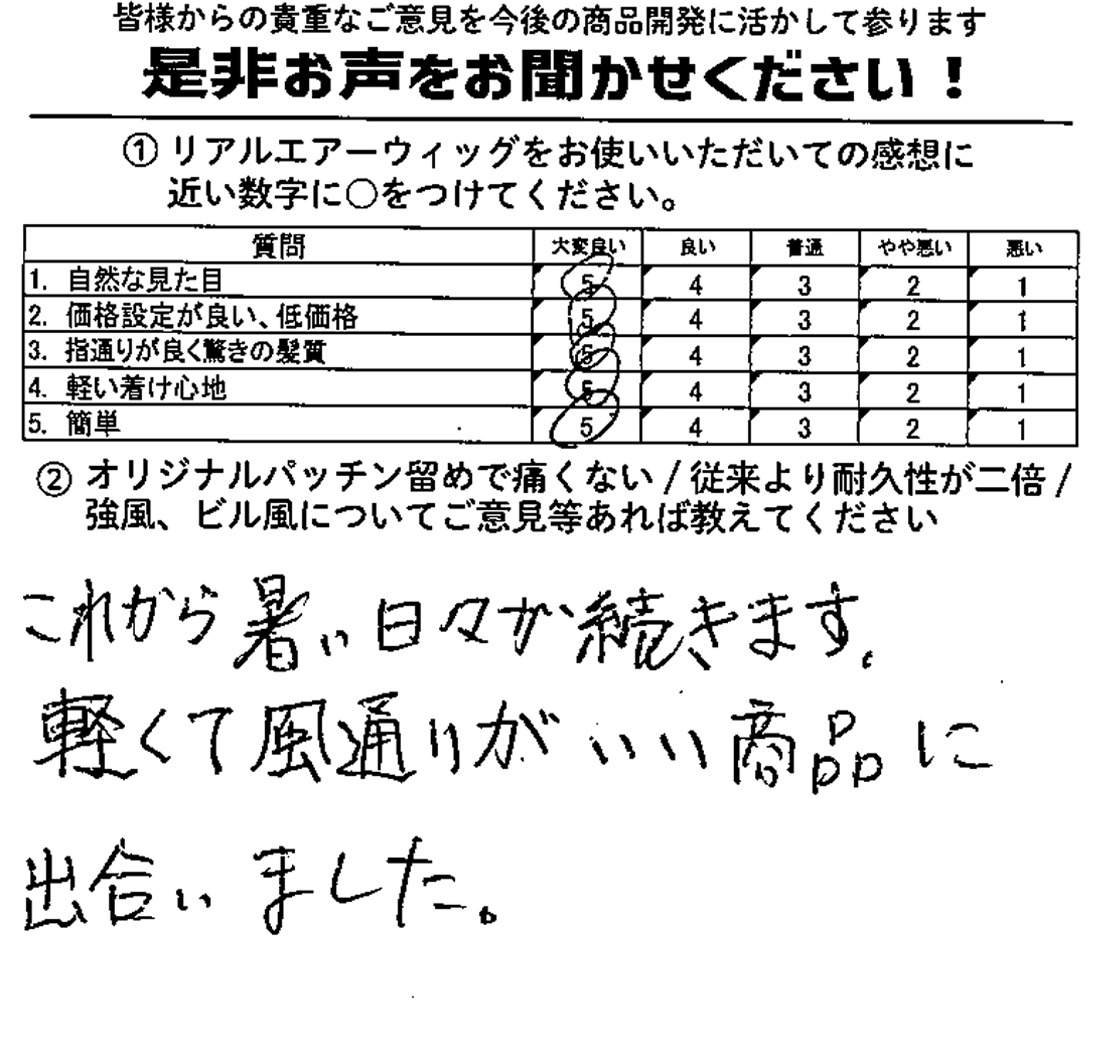 軽くて風通りがいい商品に出会いました。/お客様の声