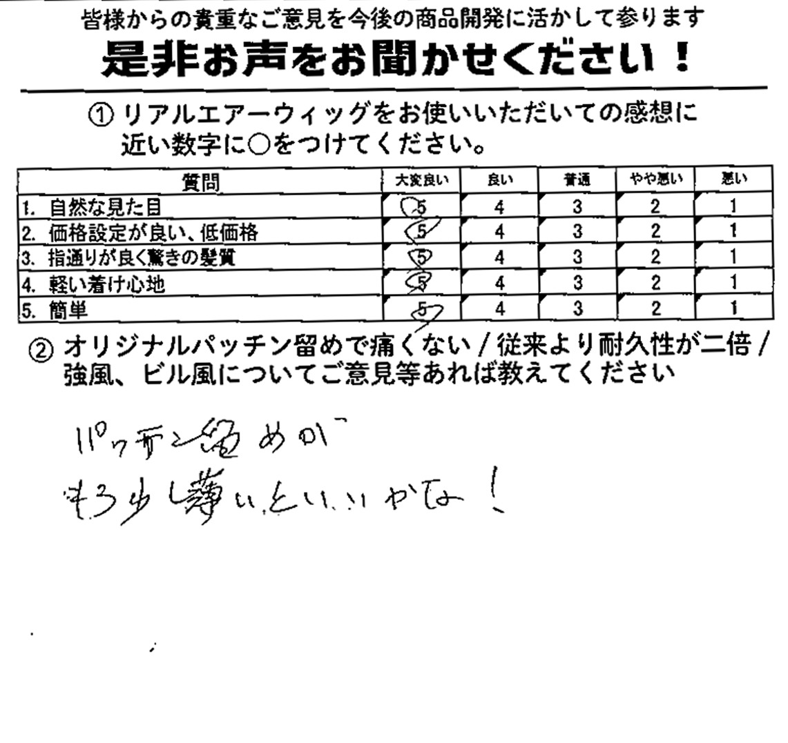 パッチン留めがもう少し薄いといいです。/お客様の声