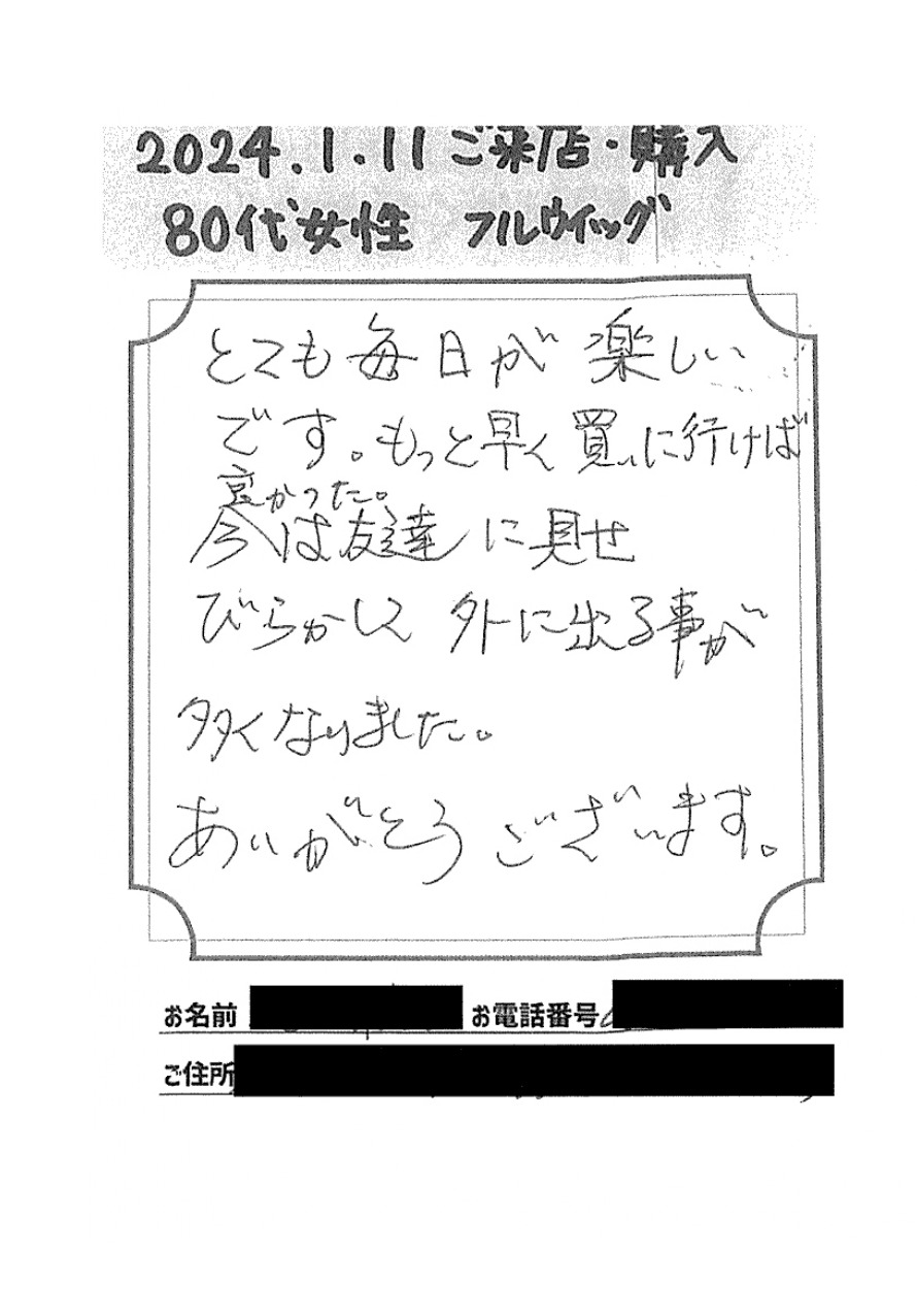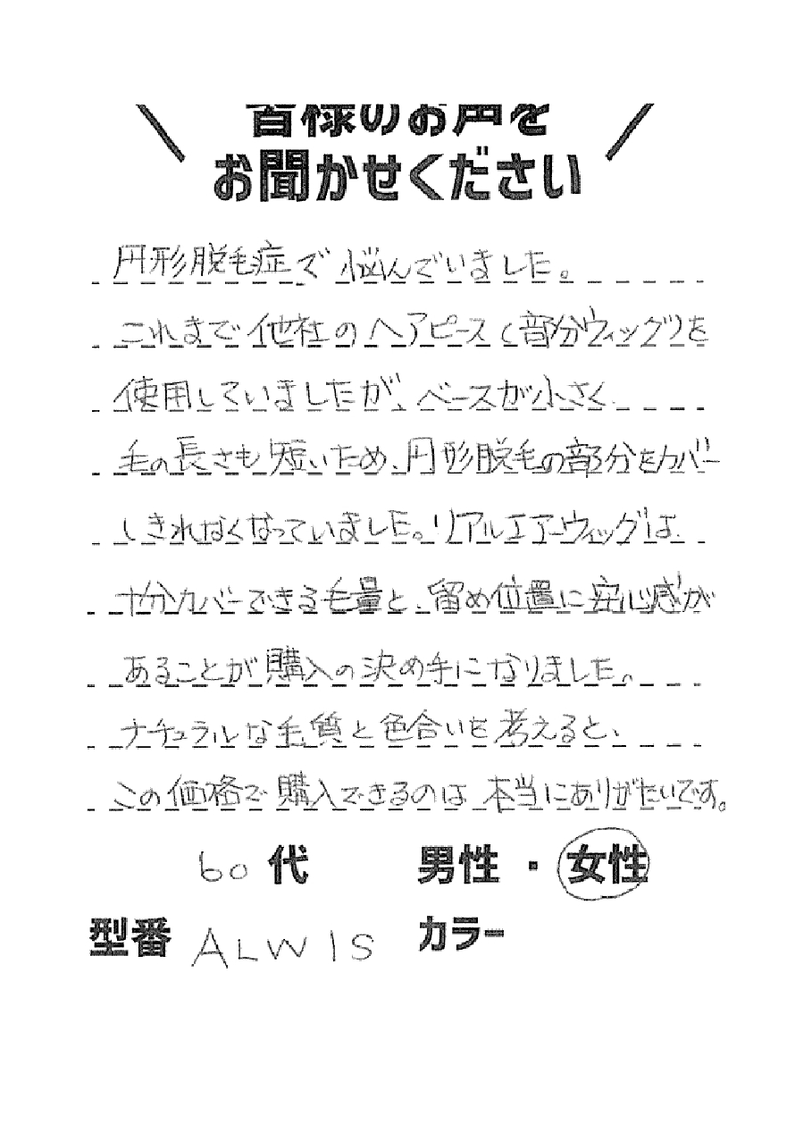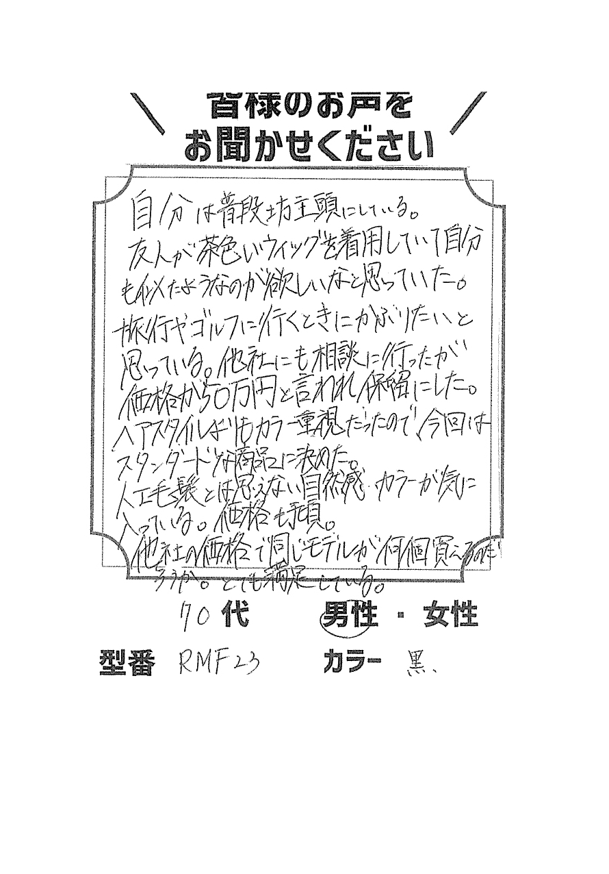 人工毛髪とは思えない自然感、カラー。/お客様の声