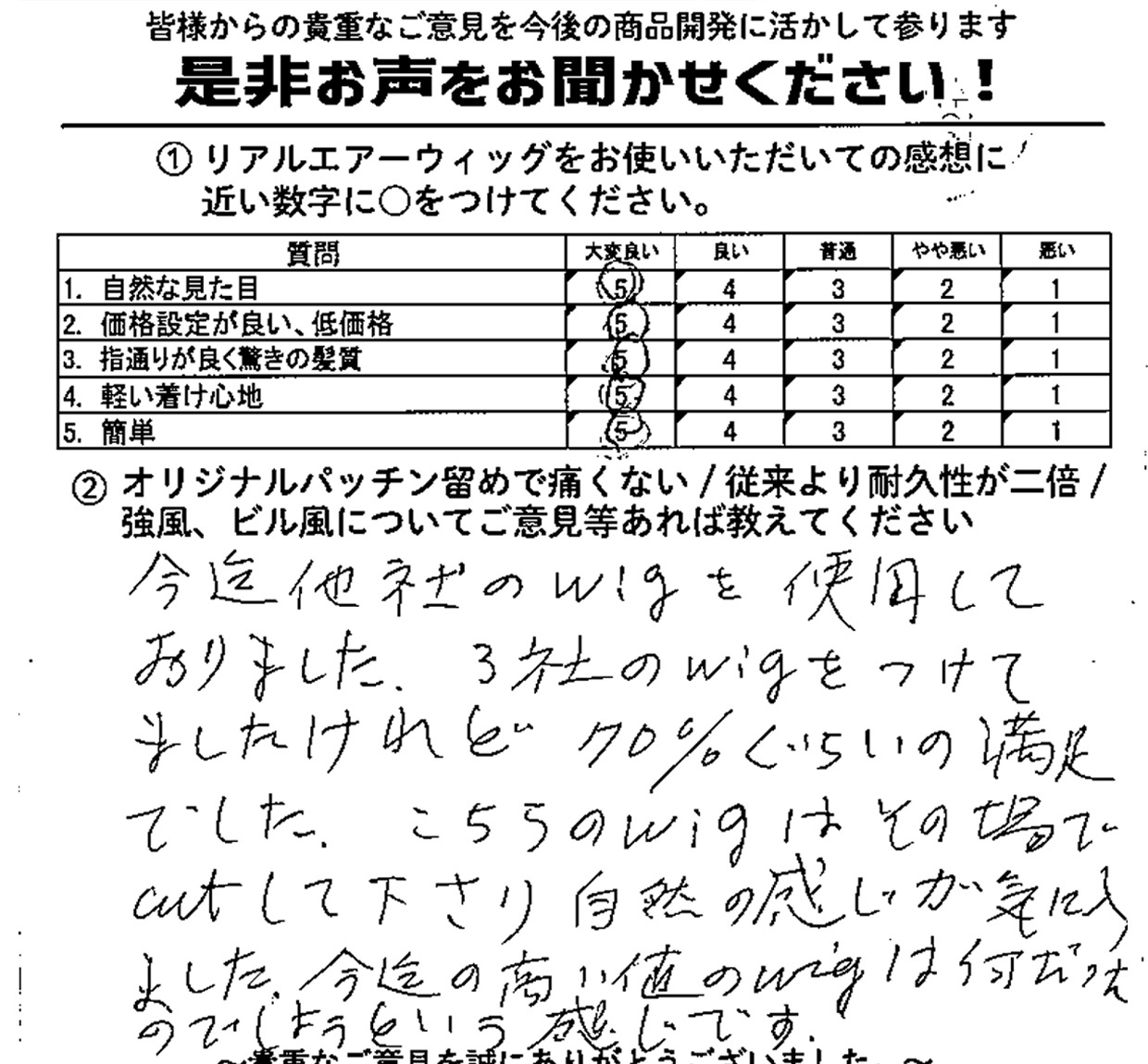 風の強い日でも自分の毛の様で、自然でした。/お客様の声